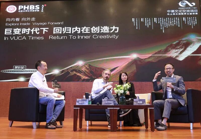 深圳作为此次北上深三城跨界公益讲座的最后一站,北京大学校友风里博士与托马斯•希伯尔共同探讨巨变时代下,如何通过内在创新而站在时代的前沿,领航未来。