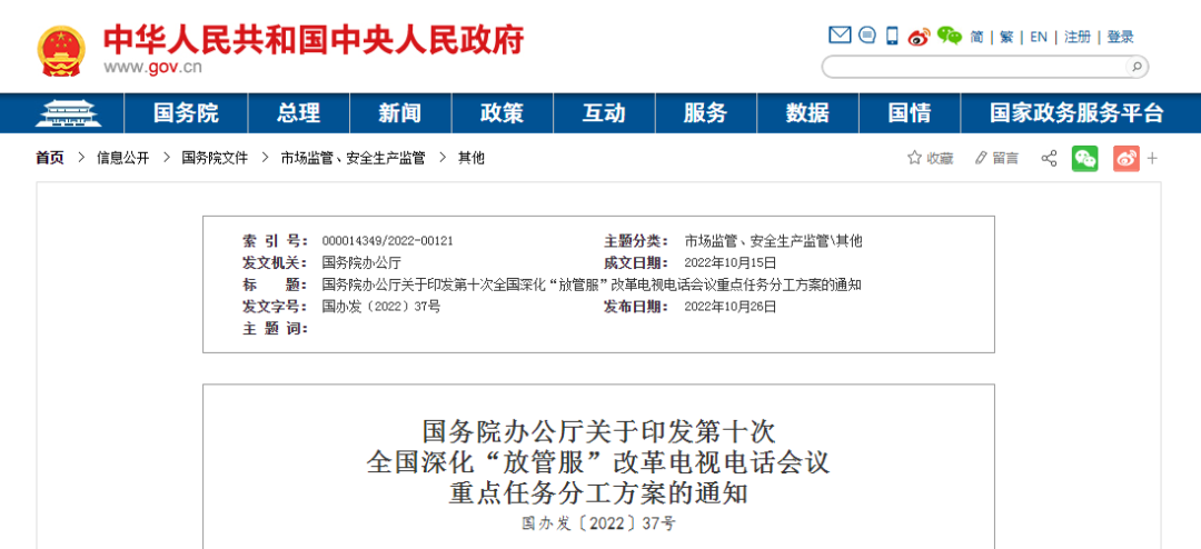 第十次全国深化“放管服”改革电视电话会议重点任务分工方案