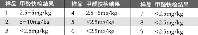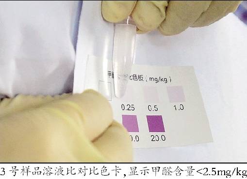颜色相同或相近的比色卡色阶示值乘以10即为蘑菇样品中甲醛含量(mg/kg)。检测工程师杨宇斯说,从结果来看,2号样品甲醛含量最高,在5-10mg/kg之间;1号和4号样品略高,在 2.5-5mg/kg之间;其他6个样品的甲醛含量极低,可以忽略不计了。“因为我们国家没有蘑菇的甲醛限量标准,我们参照欧盟和日本的鲜香菇不大于63mg/kg限量标准。可以说昨天检测的样品均远远低于这个标准。从这个结果看,大家可以放心食用,不用担心蘑菇里的甲醛问题。”杨宇斯说。北京智云达消费者食品安全检测中心技术经理、中国农业大学农学博士张玉萍告诉《法制晚报》记者,甲醛是一种无色的气体,易溶于水和乙醇,它的水溶液俗称福尔马林,具有防腐消毒的作用。甲醛在低浓度的时候,人体无法感知,但浓度高的时候,会对人的眼鼻产生刺激性的作用。如今被大家所熟知的“室内第一污染物”就是甲醛,是引起儿童白血病的罪魁祸首。