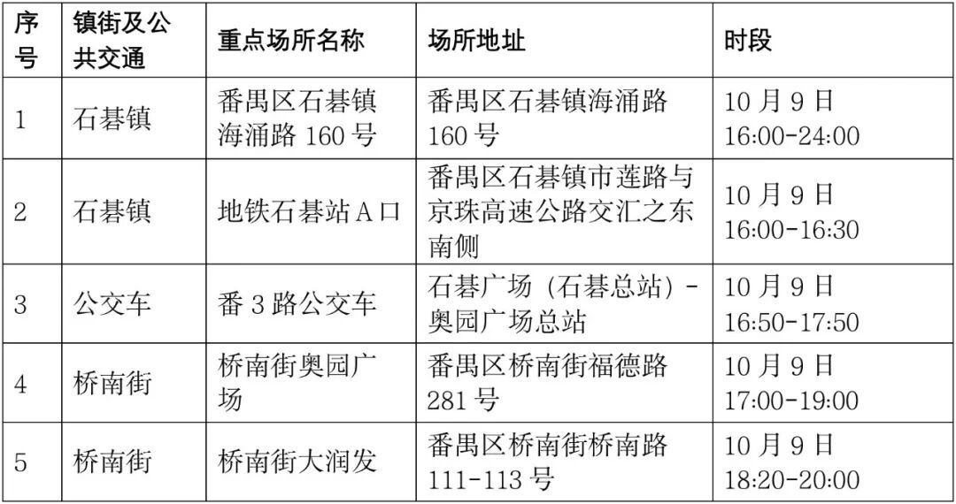 到过石碁镇、桥南街重点场所的人员