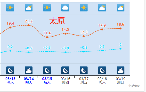 △北方6大城市气温走势预报。(来源:中央气象台)