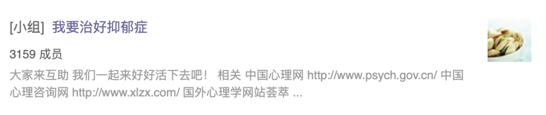 在豆瓣上,也可以搜到无数抑郁症相关的小组,抑郁症患者们在此互相给予鼓励▼