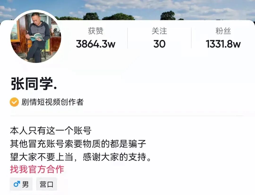你听说过”张同学“吗?他应该是近期最有话题度、涨粉最快的一位网红了。