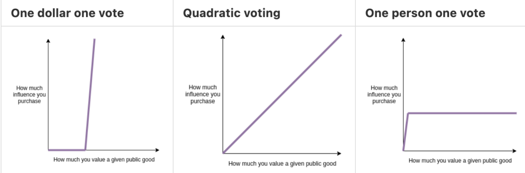 Vitalik Buterin的提出的关于1Token/票、二次方投票和1人/票机制的差异