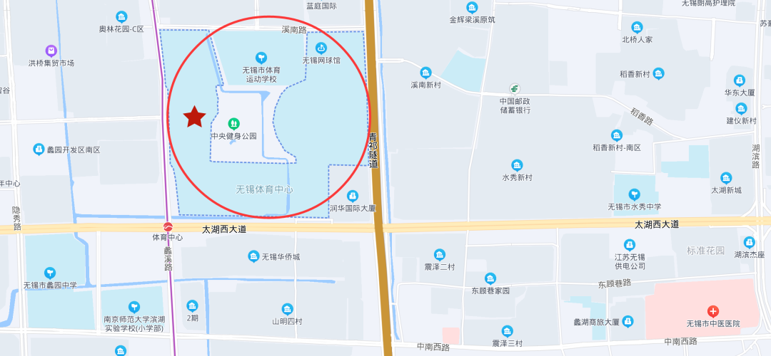 无锡新体育中心地处无锡西郊,太湖大道以北,青祁路以西,建筑路以南,交通便利