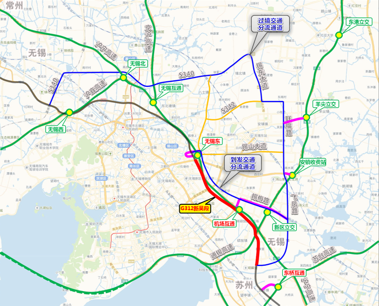过境车辆:经锡梅路通过新区立交、经金城东通过安镇收费站、经锡沪路通过羊尖立交进出通锡高速。