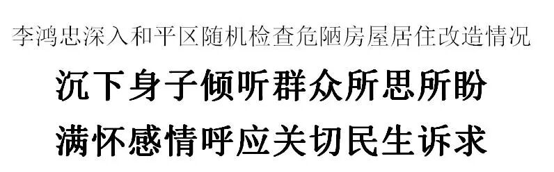 危陋房屋中群众的实际生活如何?所思所盼是什么?房屋改造存在哪些问题?怎样找到切实有效的办法和途径?新年元旦,市委书记李鸿忠以随机暗访的方式,不打招呼,直奔和平区危陋房屋较为集中的地区,入户走访,掌握第一手材料,调研真实情况,征求改善群众居住条件的意见建议。
