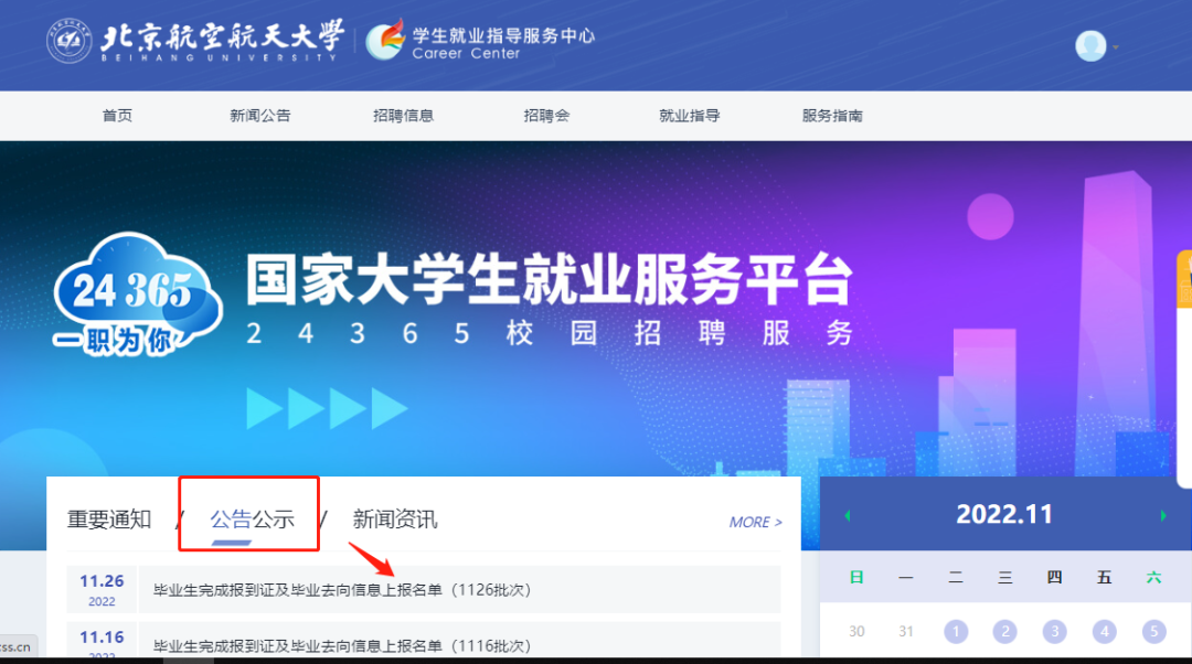 毕业生请登录北航就业资讯网: