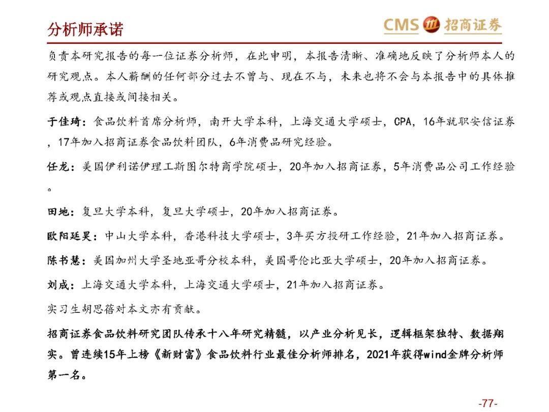 于佳琦、田地 招商食品饮料