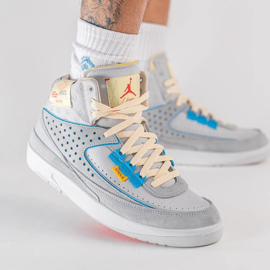 麂皮与帆布材质搭配标志性的 UN/LA 标签,质感与细节都比传统 AJ2 更胜一筹。