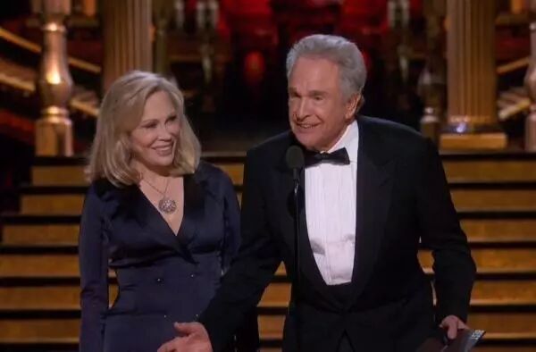 去年乌龙事件的台上主角沃伦·比蒂和费·唐娜薇又回来了,沃伦说:“感谢大家,很高兴再次跟你们见面。” 最佳影片仍由他俩颁发。