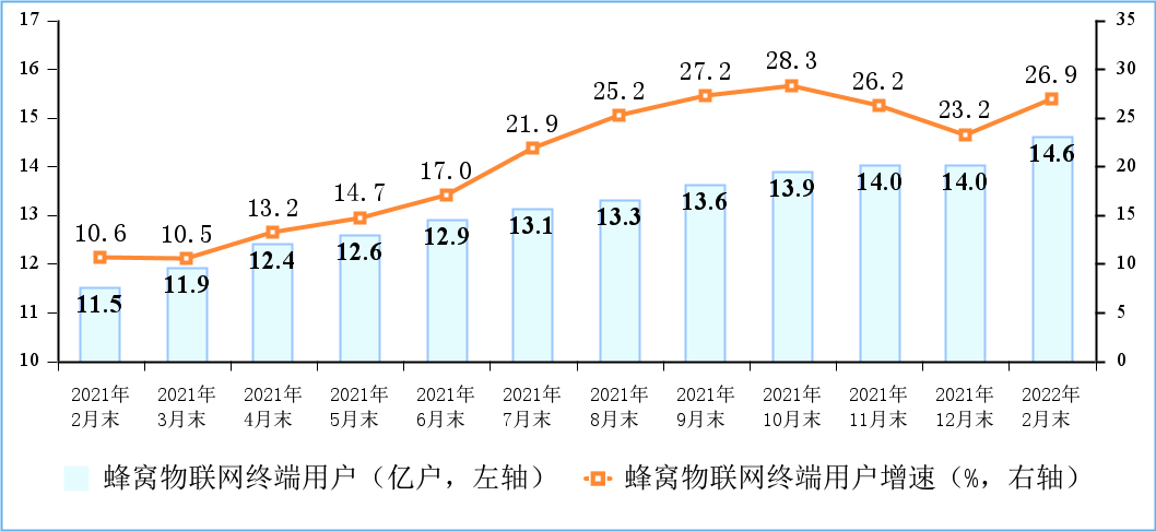 图4 2021-2022年2份末物联网终端用户情况