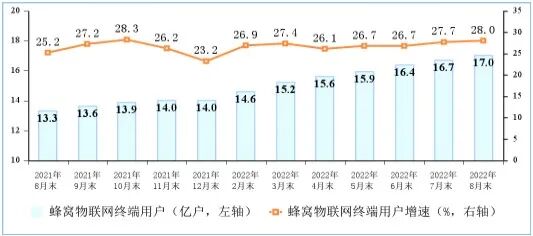 蜂窝物联网用户规模首超移动电话用户,IPTV用户稳步增加。截至8月末,三家基础电信企业发展蜂窝物联网终端用户16.98亿户,较上年末净增3亿户,移动网连接终端中代表“物”连接的蜂窝物联网终端用户数,首次超出代表“人”连接的移动电话用户数,占比已达50.3%。IPTV(网络电视)总用户数达3.7亿户,比上年末净增2190万户。
