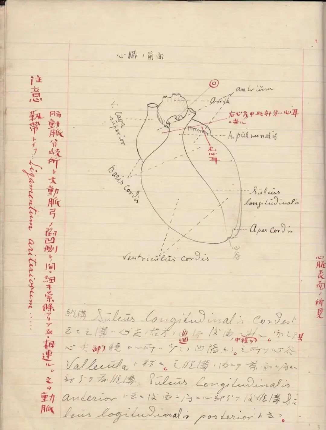 我拿下来打开看时,很吃了一惊,同时也感到一种不安和感激。原来我的讲义已经从头到末,都用红笔添改过了,不但增加了许多脱漏的地方,连文法的错误,也都一一订正。这样一直继续到教完了他所担任的功课:骨学,血管学,神经学。