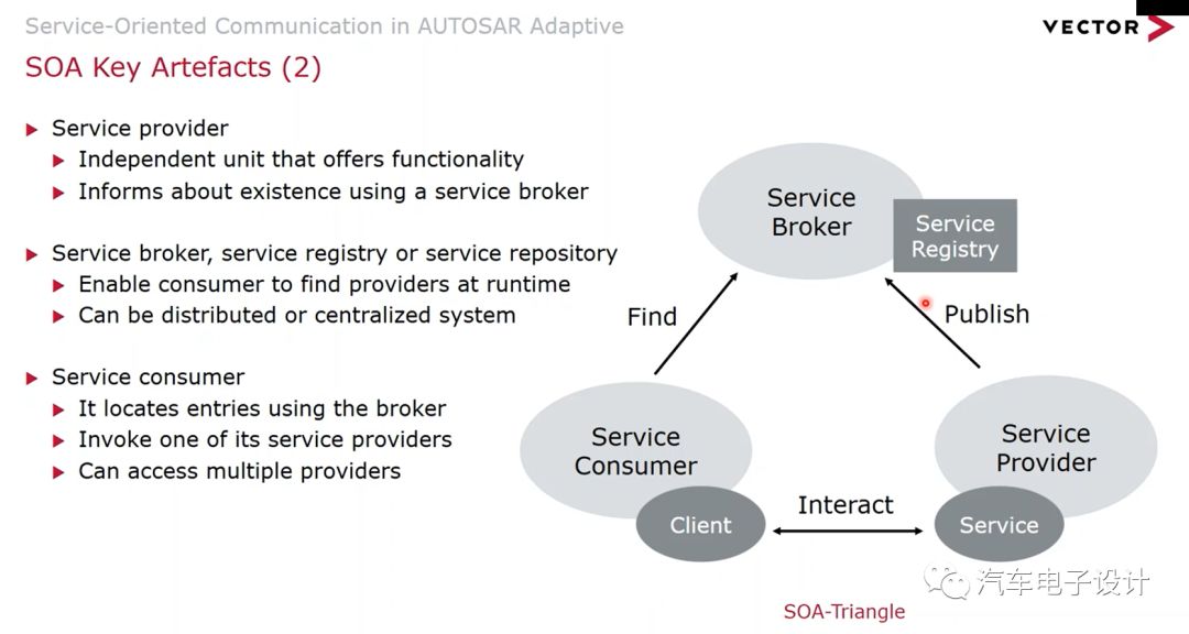 SOA这块就是基本的核心诉求,而且是从现有的车载ECU软件设计的角度开始变更。为了面对个性化的需求,功能软件开发需要更敏捷,而基于此Service oriented Architecture (SOA)是完成这项任务的关键,它能够建立动态的实时网络通信关系,把车内各个IP节点根据功能要求进行应用层服务的数据建立交互。