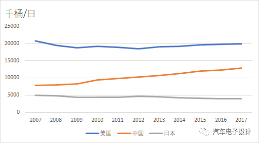 由于自身的缺乏石油,为什么日本要拼命发展HEV,K-car这样的东西,实际上这样的选择已经把日本的石油消费量限制在一个很低的限度了。10年的时间,日本很有效的控制了总的每日石油消费量。