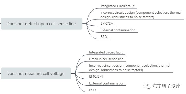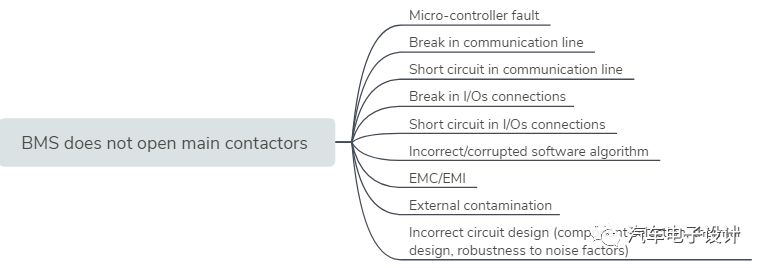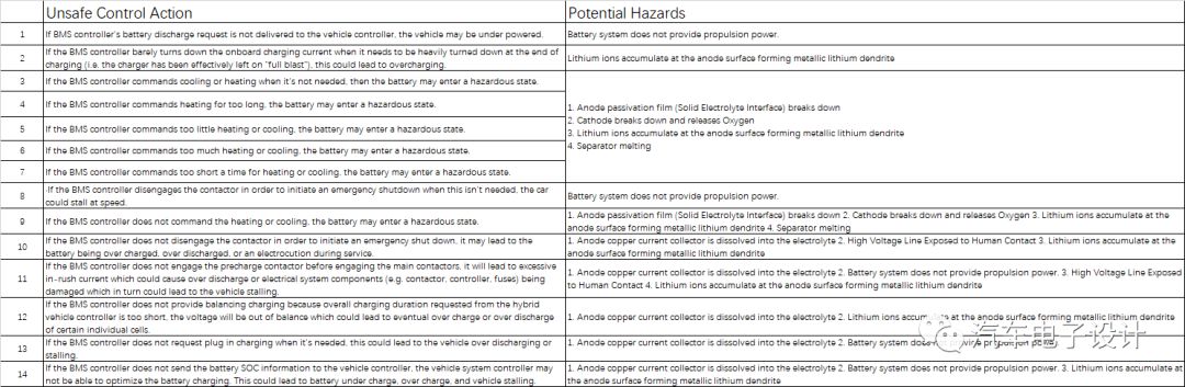 在这里叙述了很多的部分电池管理系统的故障,使用STPA分析确定了BMS对电池管理系统的控制措施(部分也可以理解是和VCU一起来做的,未来需要整合到三电域控里面)。STPA基于控制系统理论,是基于电池系统内部的元素的的控制,反馈和执行,这个分析主要针对BMS是否可以减轻电池系统的主动控制中的非预期问题。