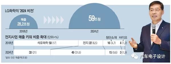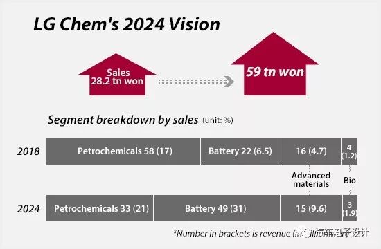 最近LG化学发布了2024 Vision,按照5年来规划,要把电池占整个公司的比重,从原来的22%提升到49%,超过其他化工的项目。电池业务要拉到近31万亿韩元。