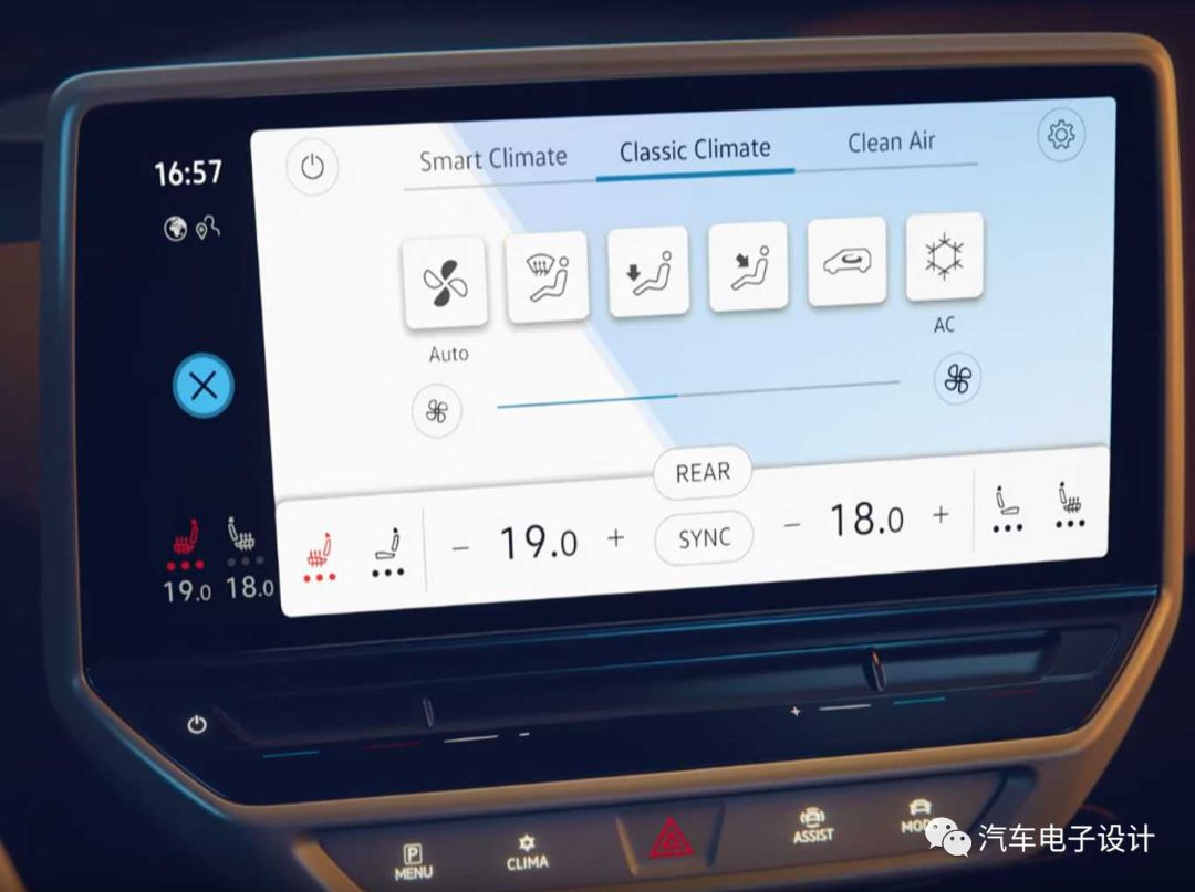 由于这套系统,统一在MCC里面设计一整套卫HUD、仪表和中控多媒体屏幕,整个系统集成导航,多媒体,空调调节,座椅加热状态调节功能。更容易为电动汽车的一些特殊的功能进行剪裁。