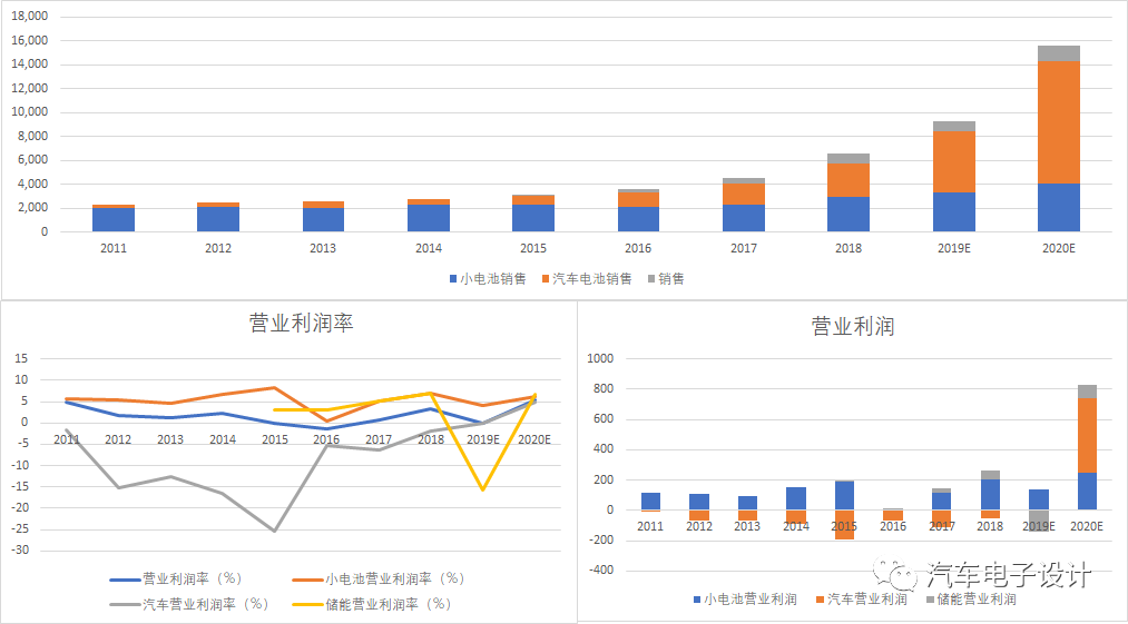 按照这个假设的数据来看,LG在过去的若干年内,其实一直没赚过钱,汽车业务一直是陪着主要的汽车客户在跟跑;小电池赚钱,也相对比较稳定,不过受客户的需求影响很大。而储能业务在一次性的赔偿以后,把之前赚的钱都赔进去了;LG要等到大众的几台车陆续投入上量和Wave1的MEB项目需求拉动,把营业额进一步拉上去才能达到一个比较理想的利润。按照三星证券的推测,2020年能把之前亏的钱都赚回来,之前的产能投入啥时候能补回来就不知道了。
