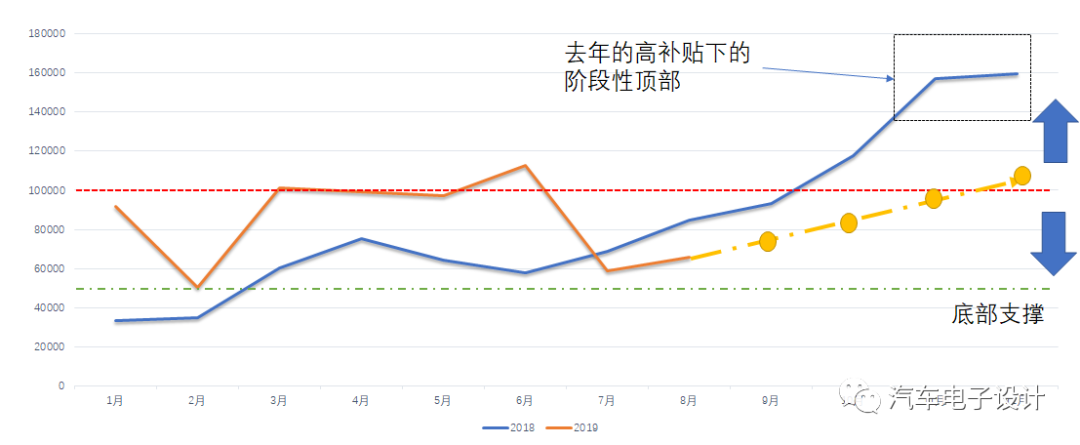 阶段性高点,是各个车企的产能释放高点16万台,支撑是下面的5万台,围绕10万台,有个5万多的振幅