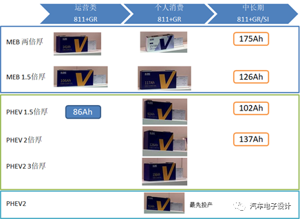 尺寸:目前看到蜂巢在做传统的355、590的模组都要做,往PHEV的标准模组、BEV的355模组和未来590的模组要求 这两点在目前的产品体系里面是比较清楚的,如下所示,整体的规划都是按照NCM811来做,其实对于一个新的电池企业往相对成熟的产品系列是没有意义的,一个是没有价格优势,另外一个是积累的经验过一个产品周期可能就没用了。