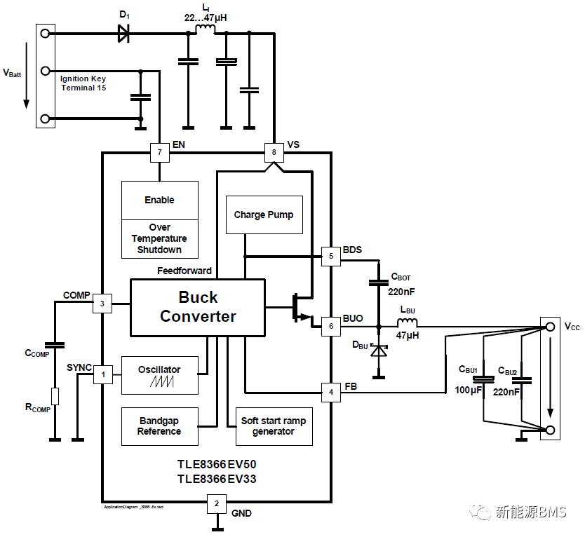 TLE8366EV50的应用电路如下图,电源输入采用二极管放反,采用保险丝防止过流;电源入口滤波的共模电感预留,底部使用两个1206\0Ω电阻短接;