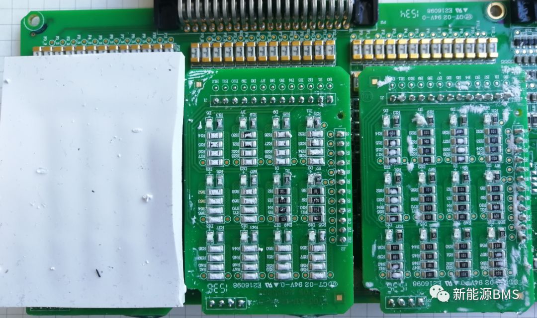 均衡电阻正面贴有散热的导热硅脂,将热量导到外壳。