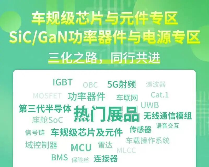 汽车电动化、智能化、网联化、催生千变万化,再造业态,生机勃勃!ELEXCON 2022车规级芯片与元件展区和SiC/GaN功率器件与电源专区,即将汇聚超过200家参展商,带来年度技术新品及方案!