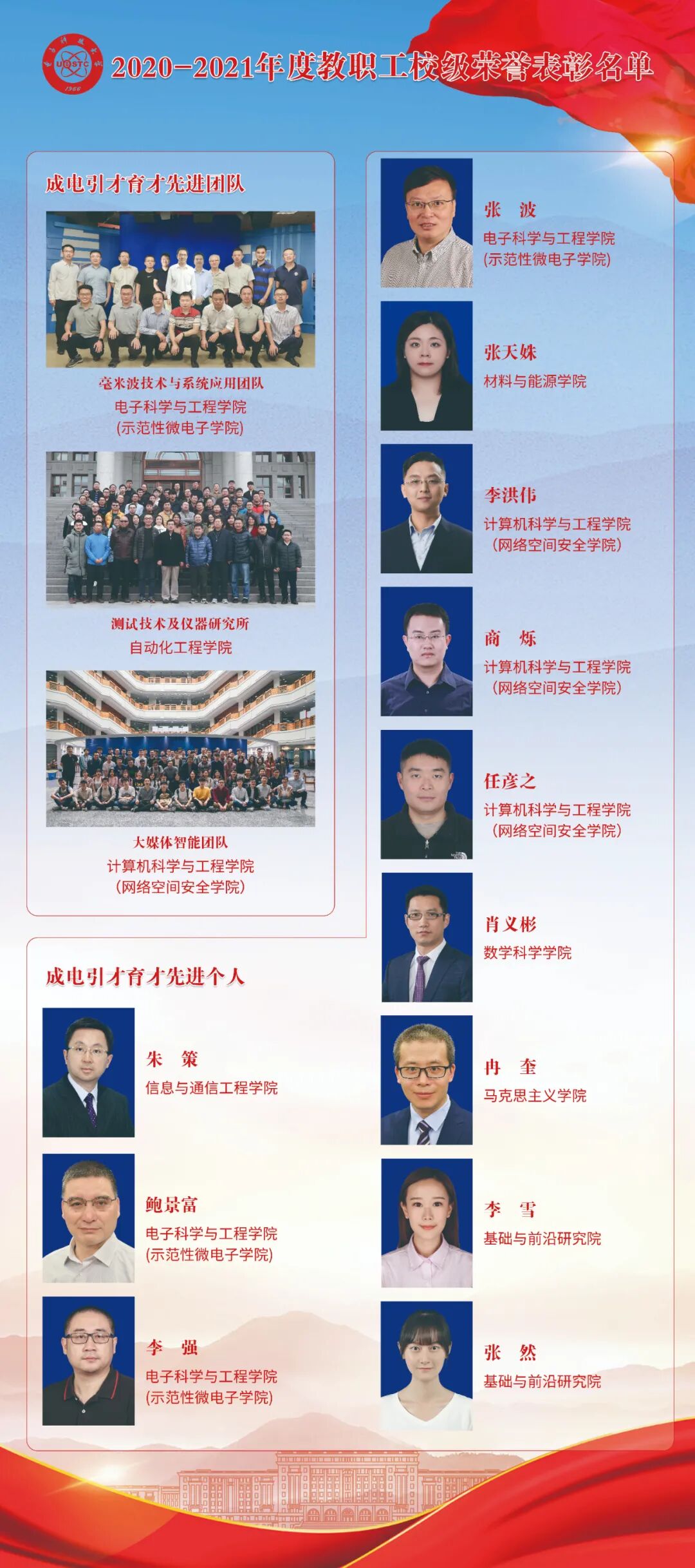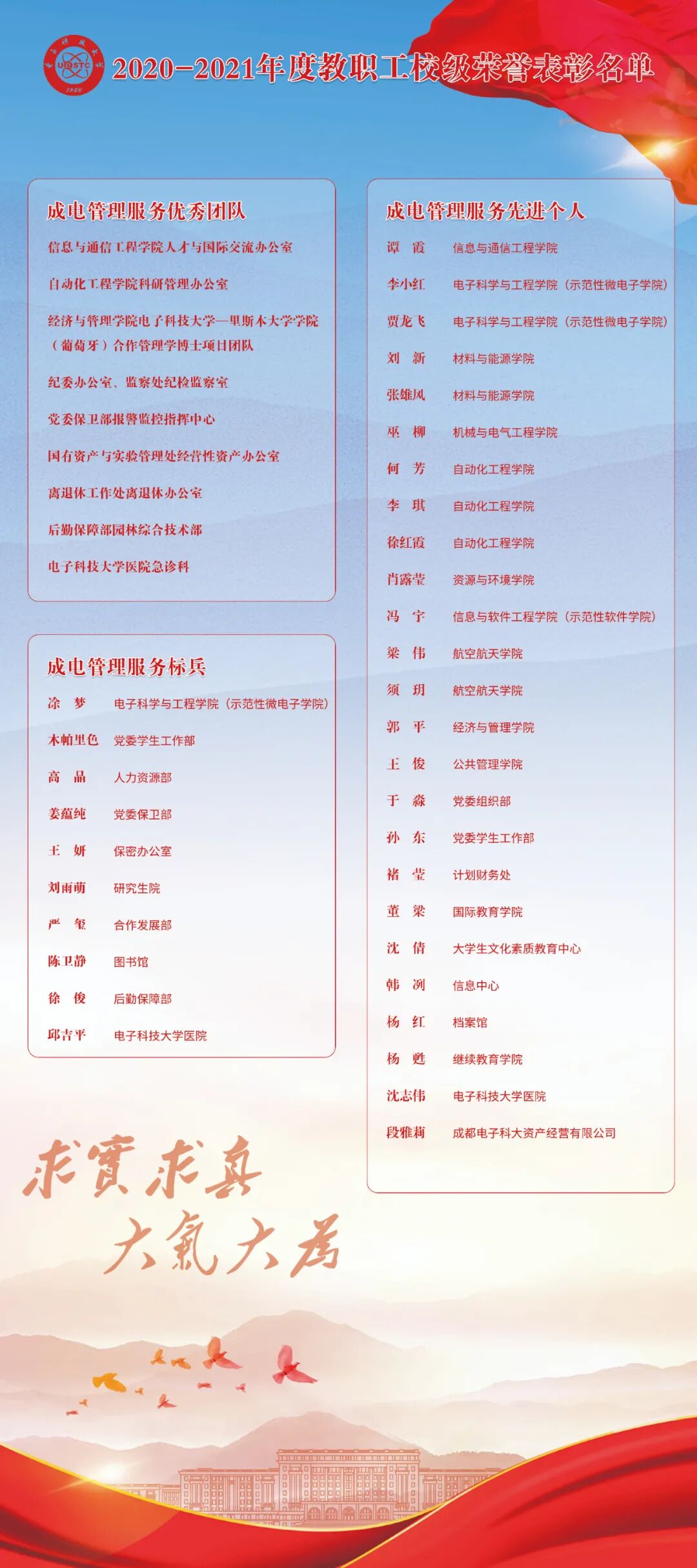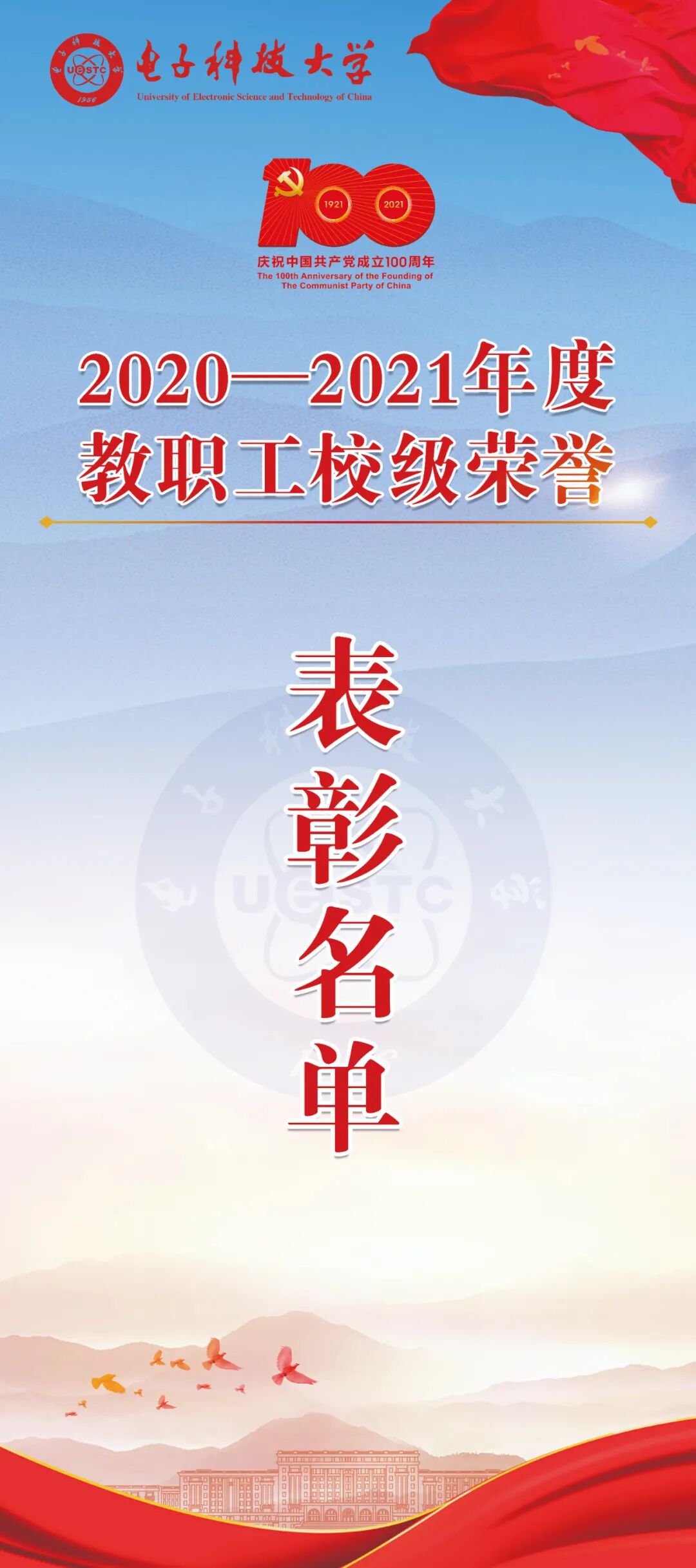 电子科技大学2019-2020年度教职工校级荣誉表彰名单如下,快来Pick你喜爱的老师吧~