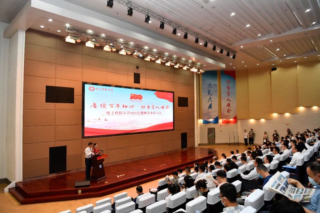 9月10日,学校隆重举行了2021年教师节表彰大会,隆重表彰过去一年在教学、科研、人才工作、国际交流、校友工作、思政工作、管理服务等方面取得突出业绩和作出重要贡献的教职工。校党委书记王亚非、校长曾勇,校领导朱宏、熊彩东、杨晓波、申小蓉、胡皓全、靳敏、徐红兵、胡俊,2020-2021年度教职工校级荣誉获得者和各学院师生代表参加活动。