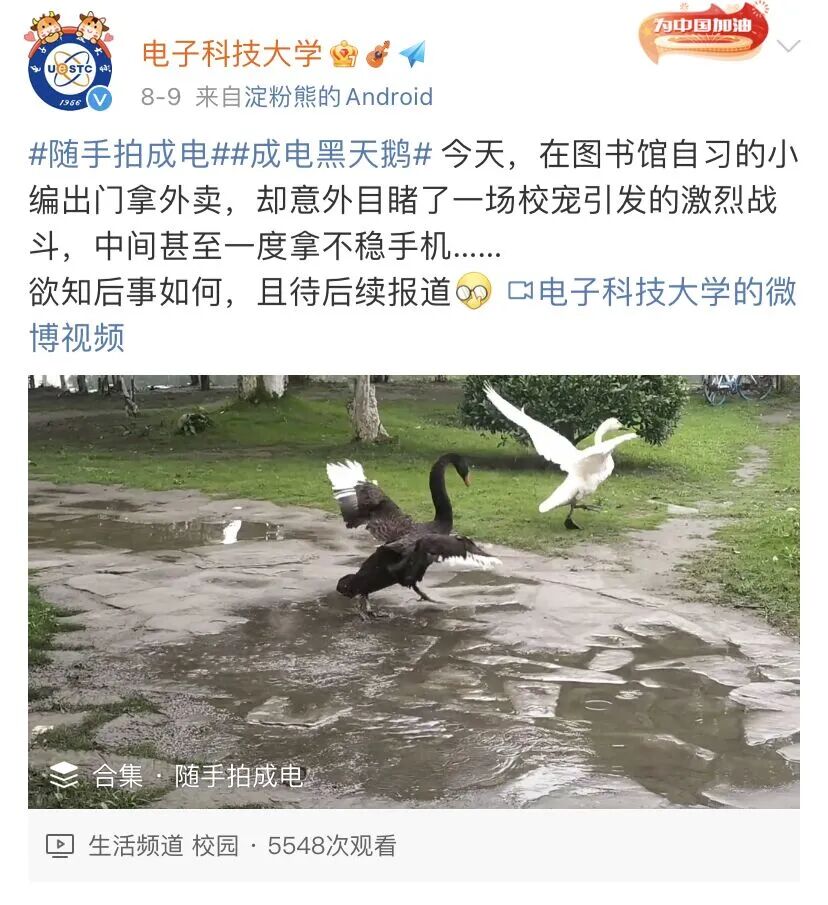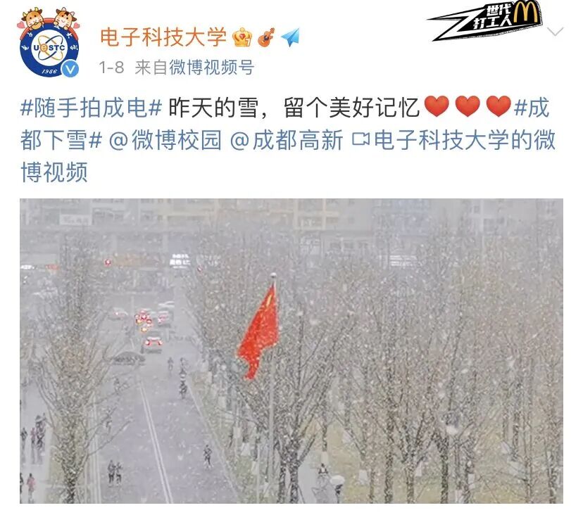 在这里,成电备受青睐,像土豆扶贫、天鹅校宠、芯片毕业礼物、学霸寝室、毕业/开学典礼等话题频频登上热搜,被人民日报、央视新闻、新华社等主流媒体转发报道。