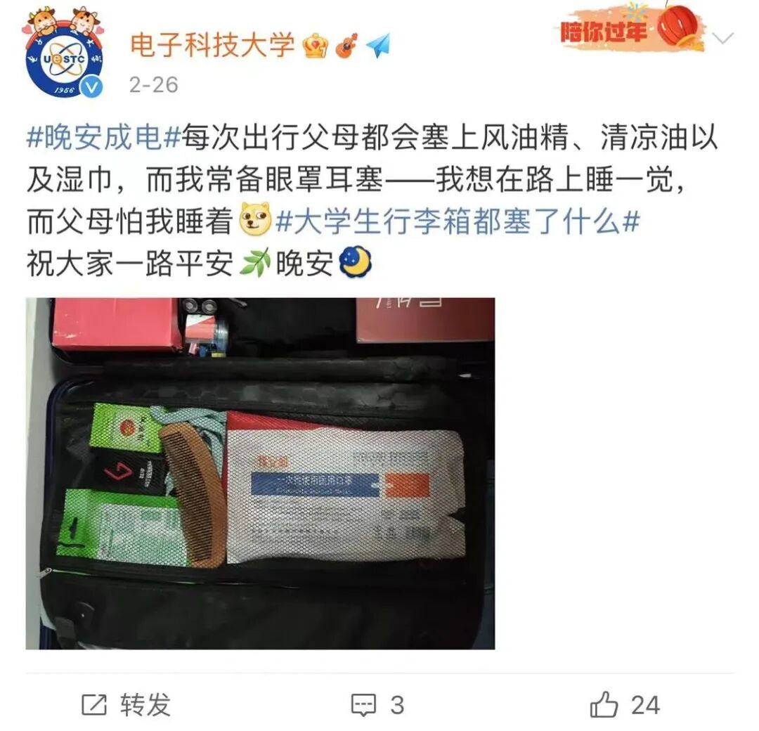 1.关注“电子科技大学”微信公众号,转发本条微信至朋友圈,并保留至开奖日;