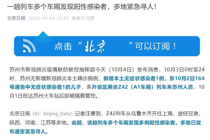 至此,Z42次列车已经有多个车厢发现阳性感染者。多地发布通告紧急寻找同乘者。
