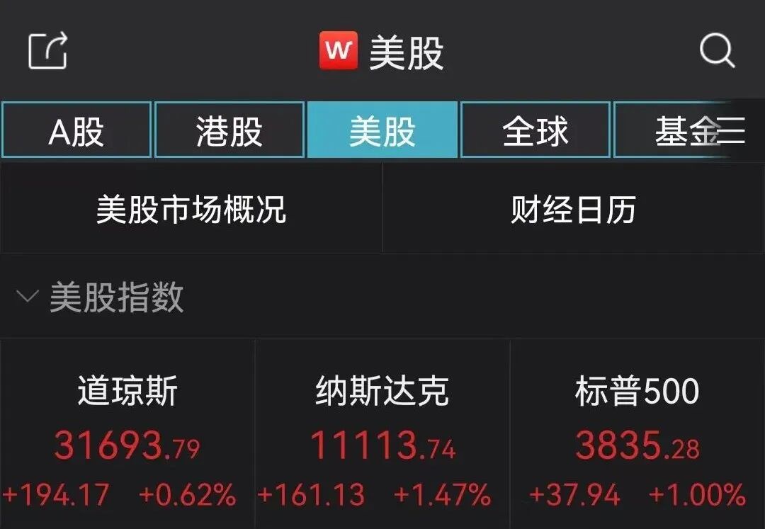 美股三大指数盘中上涨