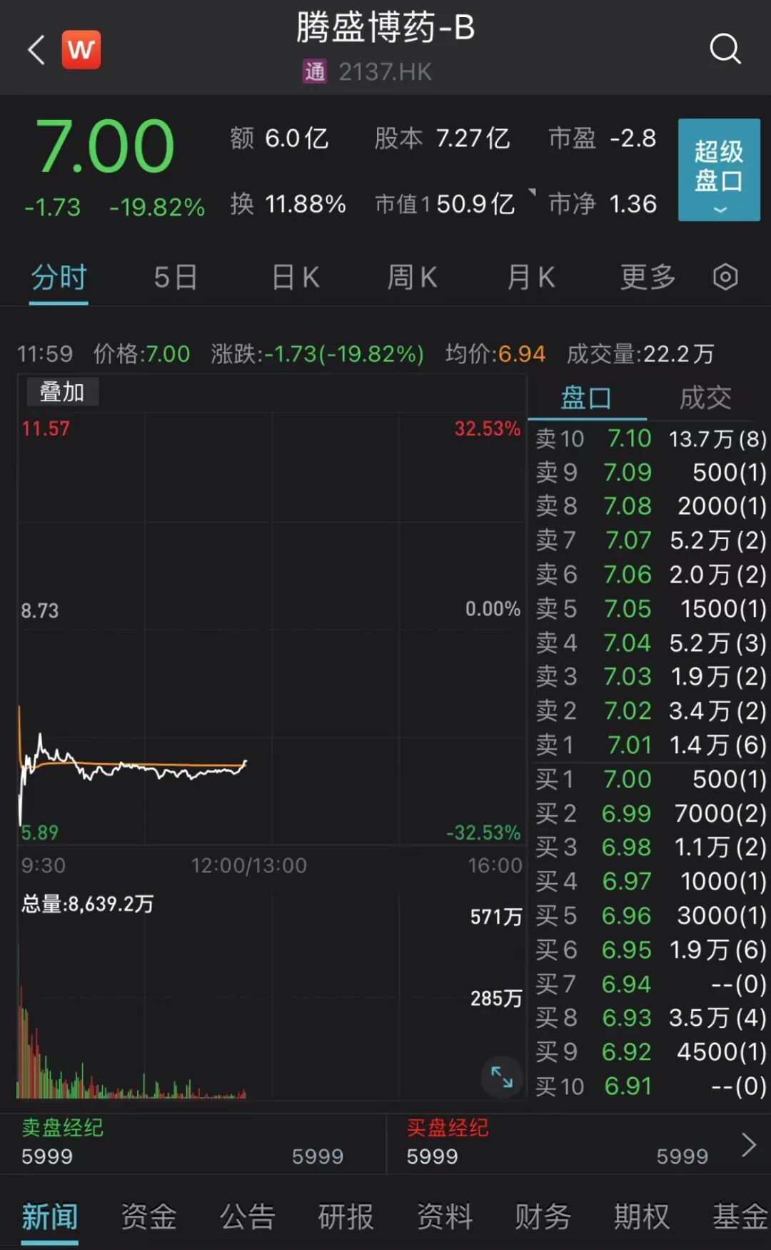 港股腾盛博药暴跌