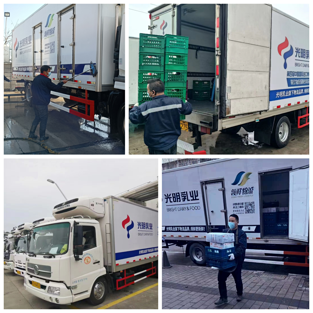 近期,不少市民通过“社区团购”的方式采购光明牛奶,由光明领鲜物流将乳制品直送社区。于是,带有“光明领鲜物流”字样的配送车夜以继日地在工厂和各个社区之间穿梭,把“光明”带给市民。
