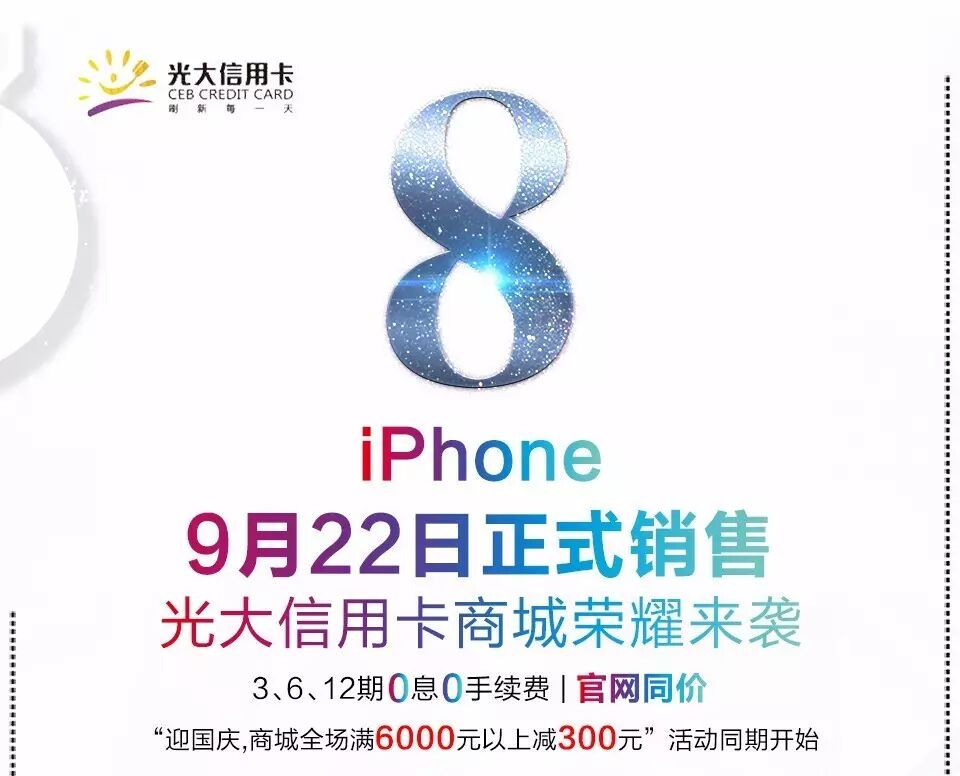 1、 登录光大信用卡商城(电脑版、微信、阳光惠生活APP),凡购买商品订单金额满6000元及以上可享受立减300元的优惠活动,限前900名,抢完即止;