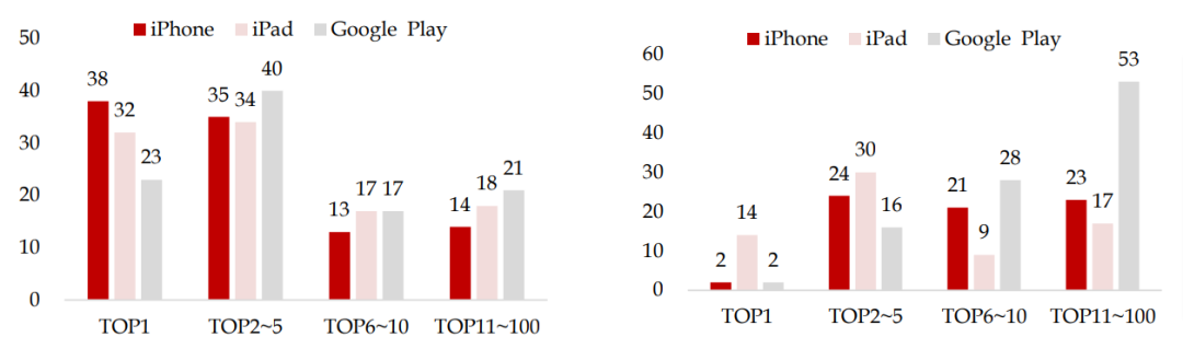 图表1:各国购物APP下载量排名中,SHEIN的国家数量(左图)VS Amazon的国家数量(右图)
