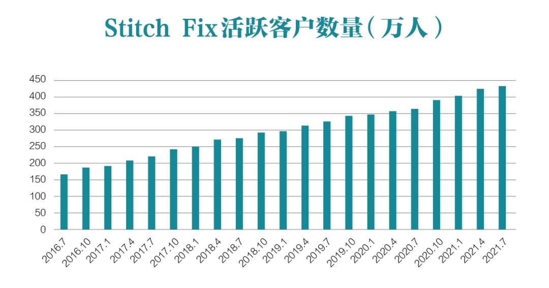 根据Stitch Fix 2020年和2021年年报,在购买Fix盒子的客户中,愿意对购物体验进行反馈的客户数量占到了80%。Stitch Fix借此构筑了庞大的面板数据。