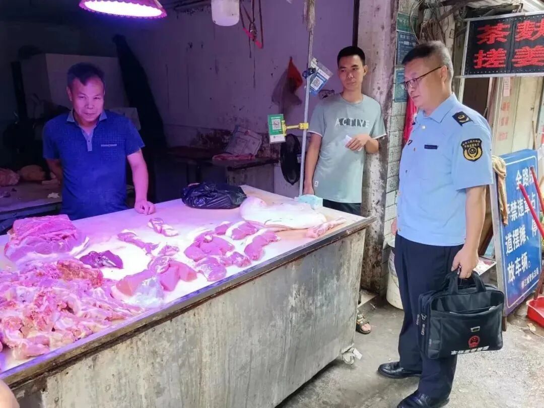 2022年7月3日,柳州市柳江区市场监管局执法人员在与柳江区城建执法局、农业农村局、拉堡镇政府开展联合检查时发现,柳州市柳江区梁冲蕊猪肉摊销售的猪肉上没有动物检疫合格讫印章及肉品品质检验合格讫印章,现场也未能出示《肉品品质检验合格证》和《动物检疫合格证》。
