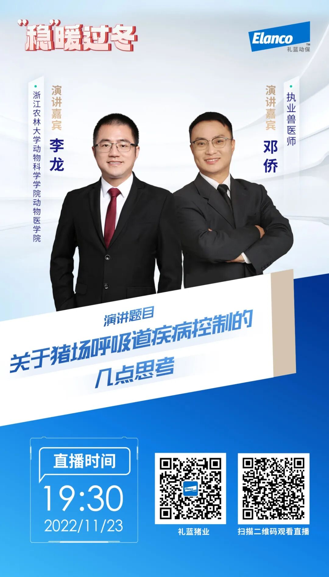 近期寒冷空气席卷全国,为养猪生产再添挑战。低温之下猪群极易发生呼吸道疾病,猪场能采取哪些措施?11月23日,礼蓝动保做客农财直播间,邀请浙江农林大学动物科学学院动物医学院李龙博士、执业兽医师邓侨分享经验,帮助猪场“稳暖过冬”。邓侨结合多年从业经验,分享了防控四法则,建议猪场在改善生物安全和生产管理的基础上,综合诊断,对症下药,泰妙菌素等药物被证实较为有效。