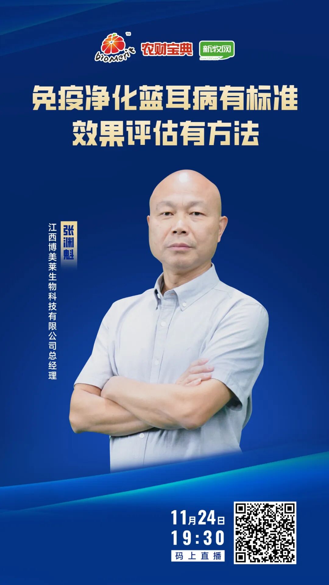 11月24日,江西博美莱生物科技有限公司总经理张渊魁做客农财宝典直播间,带来了关于《免疫净化蓝耳病有标准,效果评估有方法》的主题报告,为养猪人提供净化方案和评估方法。