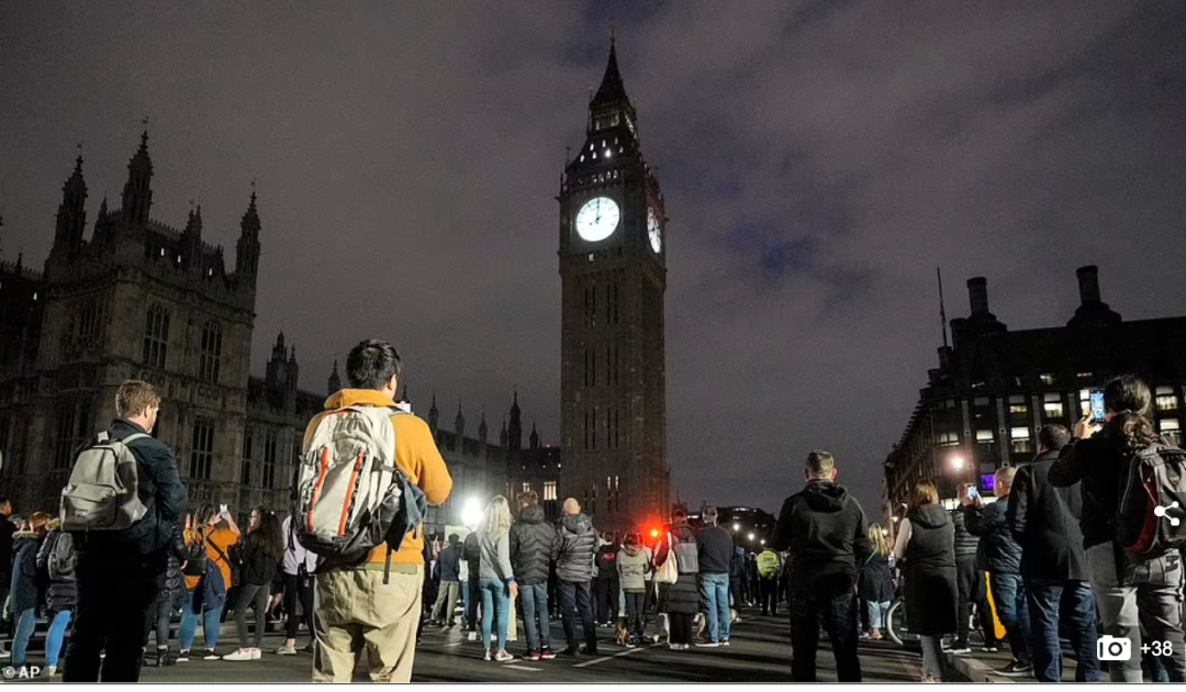 周日晚间,在女王灵柩即将离开威斯敏特宫的前12小时,英国全国在新首相Liz Truss带领下,进行1分钟默哀。