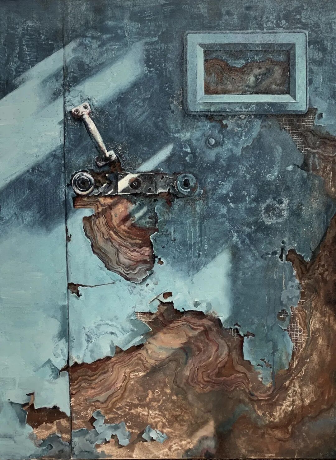 My graduation creations were started before the winter vacation. We were unable to return to school during the pandemic. There is nothing at home for painting materials, tools, etc., so I can’t continue to do the previous creation. And because of the large size of the work, after searching on Taobao and asking the painting shop I usually go to, I discovered that I could not get the large-size frame. Thus, I had to give up the original creative plan and restart. After communicating with my tutor, my graduation creation was changed to board painting. Although I have been exposed to some board paintings before, these experiences are immature, so I tried a lot in the early stage.