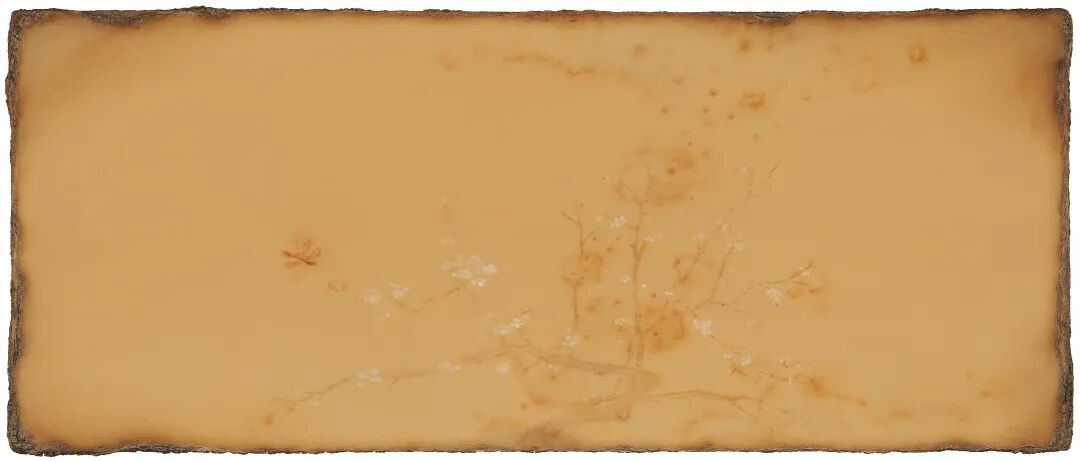 到创作“山水间”期间,我开始使用更为明确的中国画视觉语言,如山水图式和一水两岸的透视等等,到“边际”系列,我开始将中国画毛边纸的颜色与质感纳入画面,将画面边缘处理成古籍、古画如自然脱落、腐烂、烧焦或是破败般的特殊质感,希望给人以强烈的视觉冲击和对于“古老”与“传统”的直接联想。物象在这一系列中并非重点,因此我没有把物象画得十分实在。当年“边际”系列在大都美术馆展览时,有声音认为,整个展览的视觉缺乏变化。然而,不变和“慢”,恰恰就是我想通过视觉重复表达的创作想法。