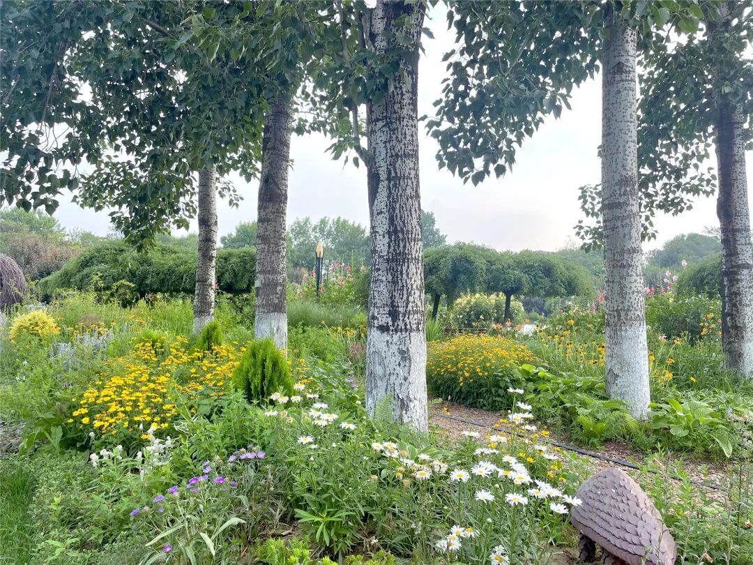 繁花锦簇、绿草茵茵、蜂飞蝶舞、绿树成荫