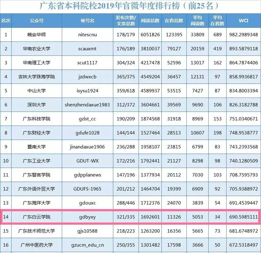 广东白云学院官微荣获