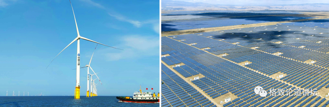 ▲ 风力发电(左)与太阳能光伏发电(右)
