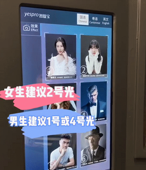 tips:建议女生选择2号光, 男生建议选择1号或4号光